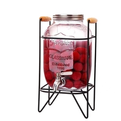Dispensador de bebidas de vidrio usado para fiesta familiar, con soporte de metal, sentadillas para agua fría, zumo, Limón
