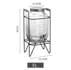 Kabartmalı logo temizle 8L 5L 4L cam turşu kavanozu suyu içecek içecek cam dispenseri metal standı ve paslanmaz çelik musluk